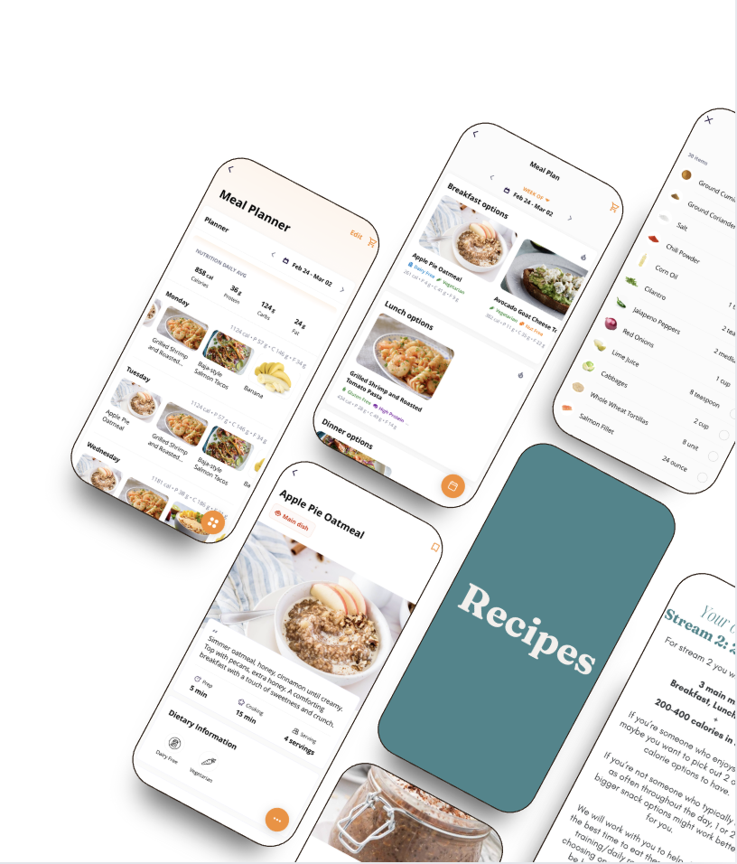 Receive a weekly plan tailored to your needs, complete with recipes and shopping lists straight to your app.